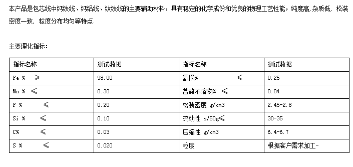 鈣鐵包芯線還原鐵粉標(biāo)準(zhǔn):